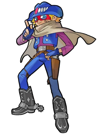His persona is that of a cowboy or a gunslinger, though he rarely uses his guns that he shows off when the round starts.